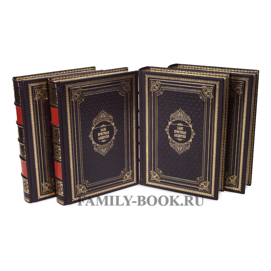 Книга Подарочное издание книги Андерсен Ханс Кристиан. Собрание сочинений в 4 томах произведена на оборудовании мастерской family-book, с использованием лучшей настоящей кожи.