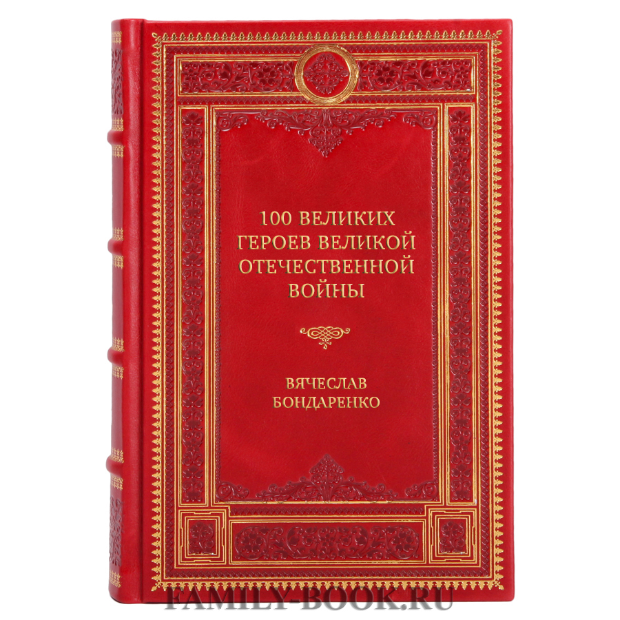 Книга Эксклюзивная книга 100 великих героев Великой Отечественной войны Вячеслав Бондаренко произведена на оборудовании мастерской family-book, с использованием лучшей настоящей кожи.