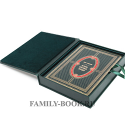 Тиснение золоченое и блинтовое, а на корешке, окатанны ручным способом, бинты. Обрез трехсторонний, золотой, который спасает подарочную книгу от повреждений.