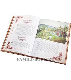 Тиснение золоченое и блинтовое, а на корешке, окатанны ручным способом, бинты. Обрез трехсторонний, золотой, который спасает подарочную книгу от повреждений.