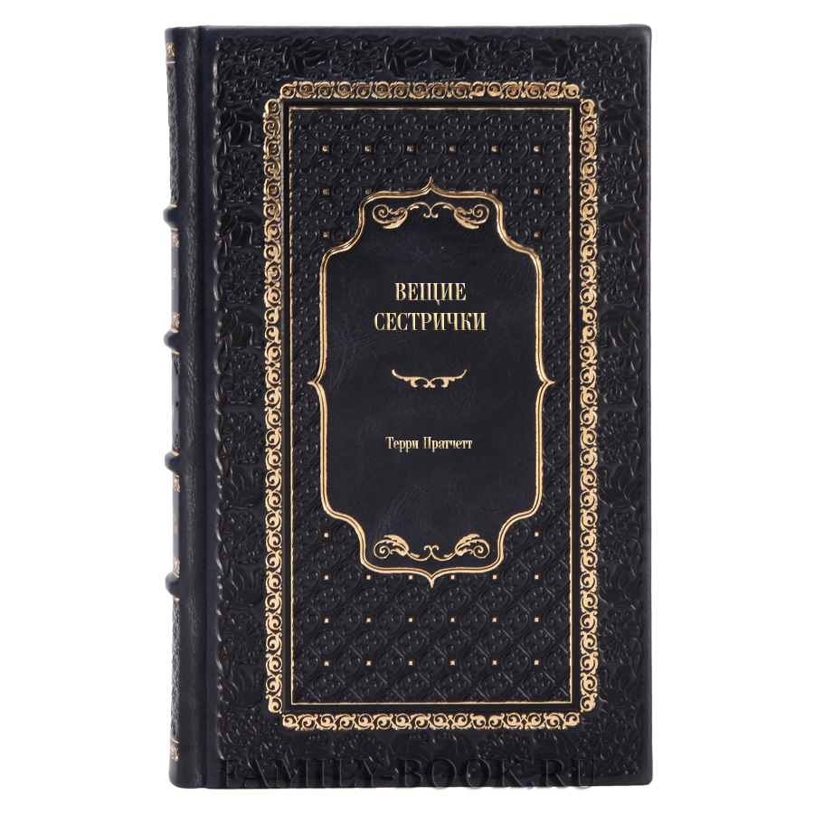 Книга Подарочное издание книги Вещие сестрички Терри Пратчетт произведена на оборудовании мастерской family-book, с использованием лучшей настоящей кожи.