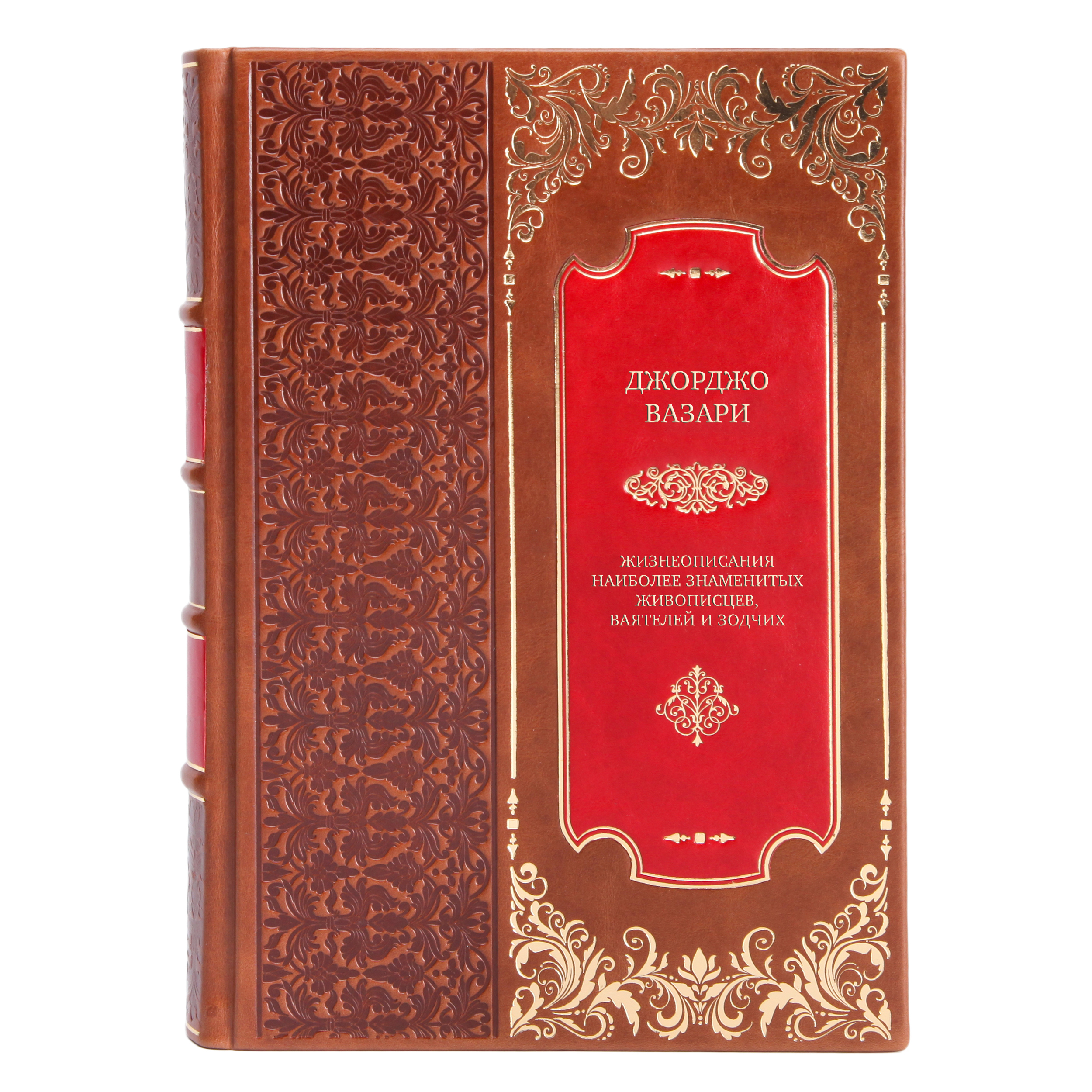 Книга Подарочные эксклюзивные книги Джорджо Вазари Жизнеописания наиболее знаменитых живописцев, ваятелей и зодчих в 5 томах произведена на оборудовании мастерской family-book, с использованием лучшей настоящей кожи.